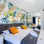 El establecimiento también dispone de una pequeña cocina. El restaurante Francis Steakhouse ofrece comida europea y está ubicado a 200 metros del alojamiento. El alojamiento está junto a la parada de autobuses San Eugenio. Apartamenty Geranios dispone de una piscina.
